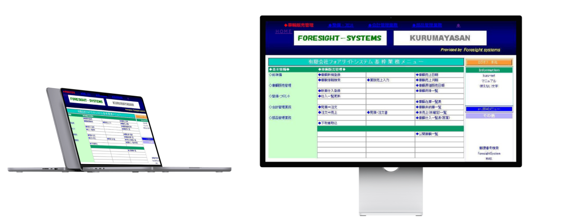 車両販売管理・整備管理・部品管理・顧客管理・会計管理・インターフェース管理がKURUMAYAsanで1つにまとめられインターネット対応で新しくなりました。