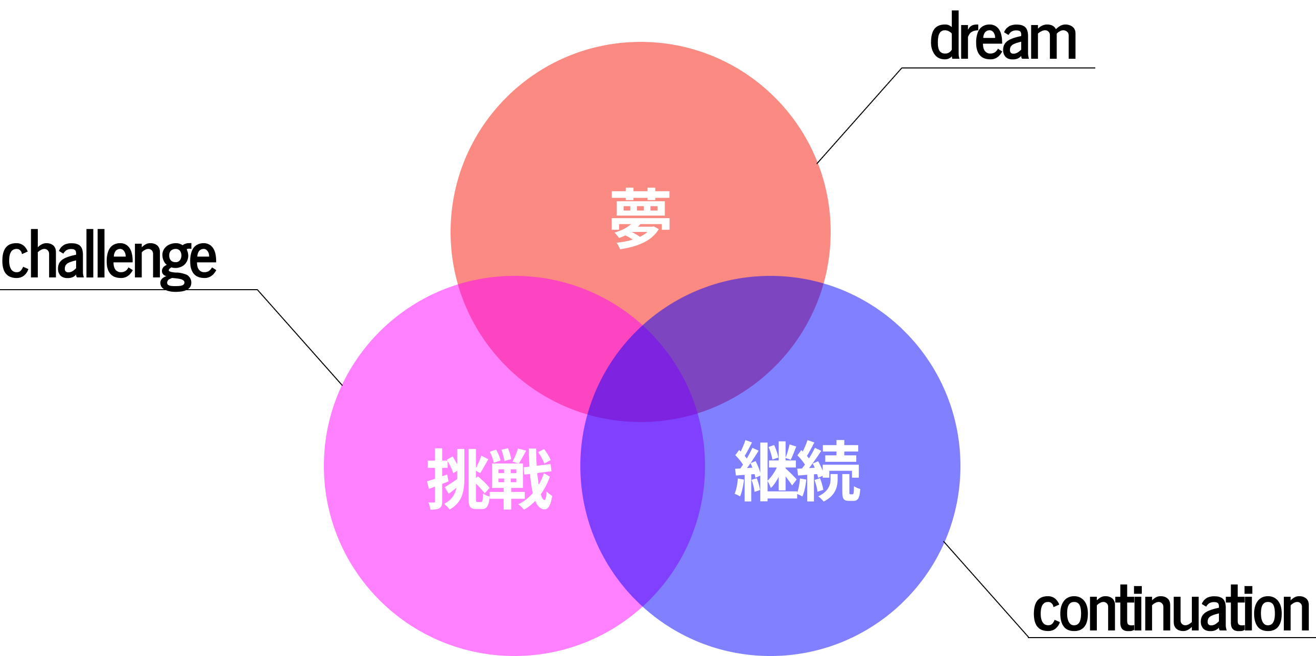 - ・夢を広げ、目標を見据え、計画を基にスピードと変革を大切に実行と継続に挑戦します。